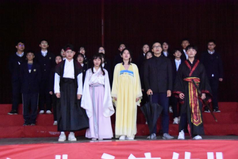 高二(2)班的同學(xué)們緊接著用了一曲《離騷》演繹了歷史偉人屈原面對國破家的痛心與無助,在極度苦悶,完全絕望的心情下于汨羅江自盡的無可奈何。